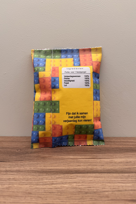 Maak jouw traktatie uniek met eigen naam en leeftijd in dit leuke Lego thema.